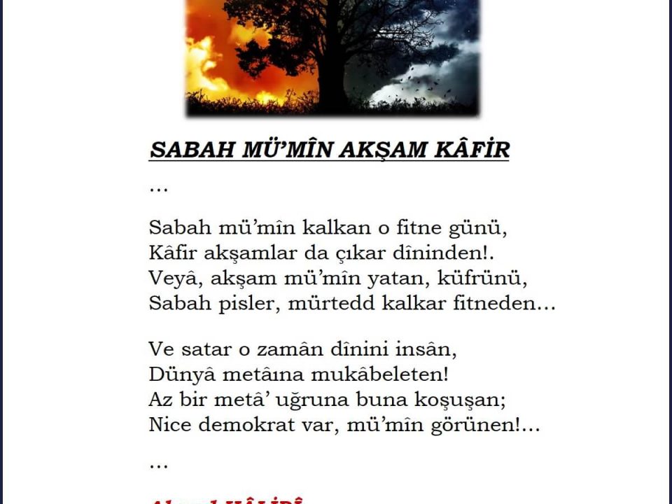 Öyle bir câhiliyye ki, neresinden bakılsa tam bir akıl ve rûh hastalığı sirâyetinin hiçbir hudûd tanımadan vasatı yalayıp paçavra etdiği Sodom Gomore’lik bir