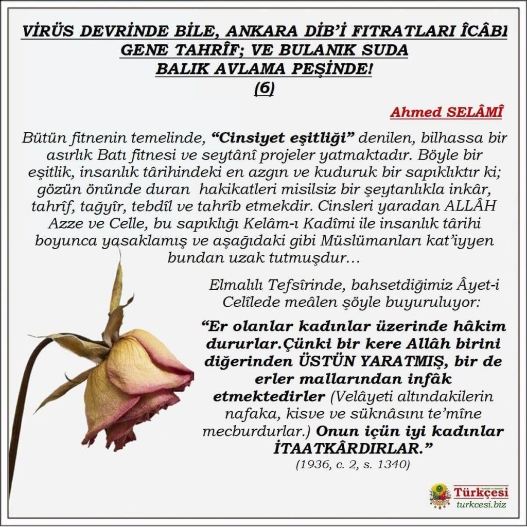 1000 yıllık Müslüman Türkün (Nâmûs, Ahlâk, Âile, Îmân ve her asıldaki telâkkîlerini, Global Çete projeleri istikâmetinde değiştirmeye uğraşanlar, bugün politika, medya ve her türlü müessesâta çöreklenerek icrâ-i mel’anet eylemektedirler. Ankara DİB’inin; ve Leydimsi ve sözleşmeci dernek, denek, binek ve kânûnların nefesi buna yetecek midir, bu ayrı mes’eledir! Onlar istedikleri “Nâmûs ve ahlâk telâkkîlerini hangi batılı menfezlerden taşıyıb kendilerine giydirirlerse giydirsinler”, amma bunları, vezn ü terâzî sâhibi Müslümanlarla onların mahallesinde aslâ kolay satamazlar, bedeli çok ağır olur!. Alıcı bulacakları kenar mıntıkalar, kendilerini “Müslüman” zanneden, modernite ve kamalite hayat tarzı içinde bulunarak, güya bunlara karşı duran ve İslâmiyyet’i müdâfaa etdiği zehâbı ve hülyâları içinde bulunan içi boş zavallı kalabalıklardır…