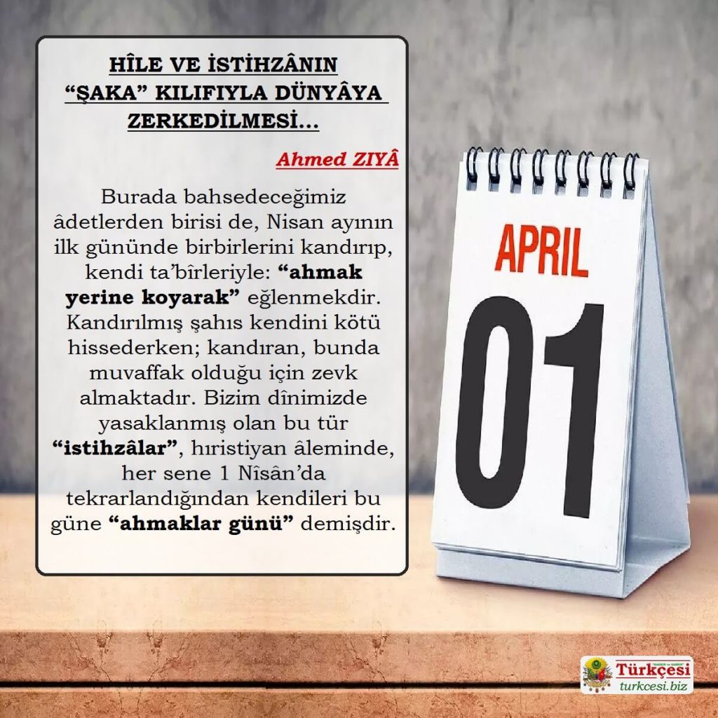 Bu mevzuyu ele almamıza vesîle olan husus ise, talebeliğimizde, hıristiyan bir batı ülkesinde görmeye alışdığımız bu âdetin, “nisan şakası” adı altında “Müslümân” ülkesinde yayılarak genç, yaşlı, gazeteci veya sîyâsîlerden olsun, hemen her kesim tarafından irtikâb edilir olduğuna esef ve hayretle şâhid oluşumuzdur.