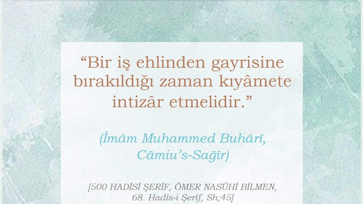 “Bir iş ehlinden gayrisine bırakıldığı zaman kıyâmete intizâr etmelidir.”