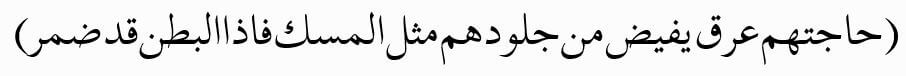 Hadîs-i Şerîfi muktezâsına göre “Anların abdest bozmaları vücûdlarından misk gibi bir ter çıkmakdan ibâretdir ki anın çıkmasıyla karınları boşanır.”